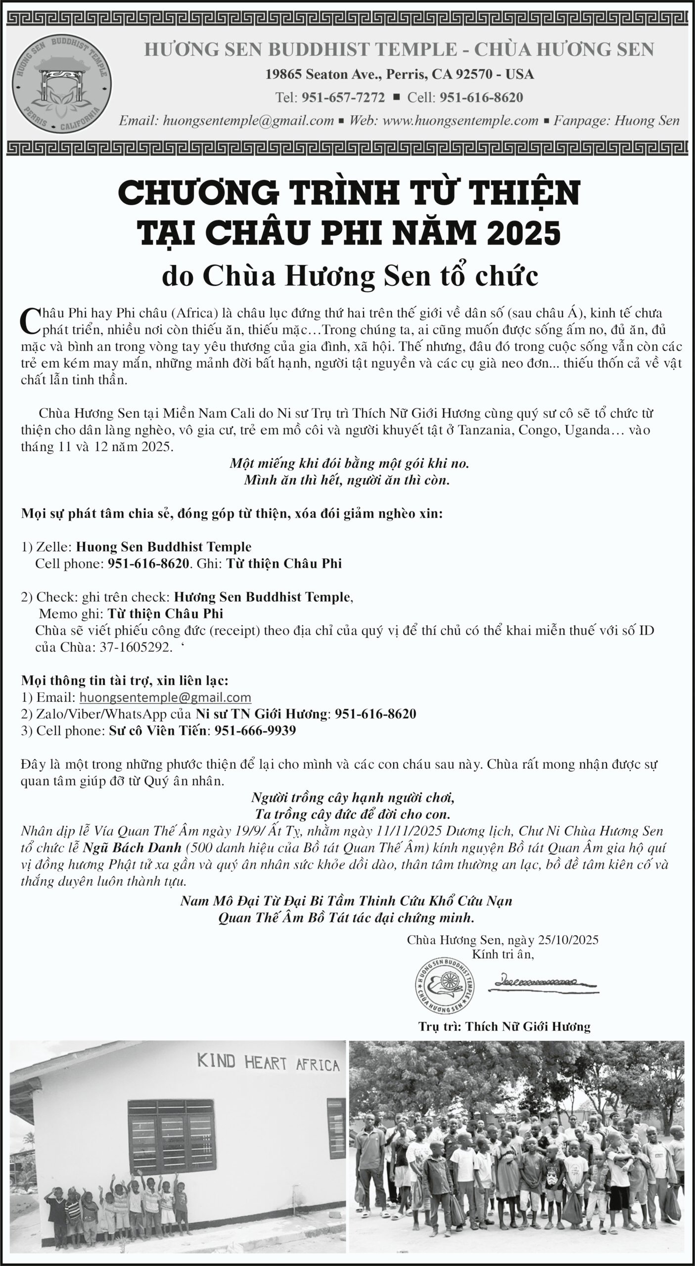 Thông Báo Cộng ĐồngCHƯƠNG TRÌNH TỪ THIỆN TẠI CHÂU PHI NĂM 2025 DO CHÙA HƯƠNG SEN TỔ CHỨC Posted on October 28, 2025 by T Nguyen T Nguyen PHÂN ƯU: ÔNG NGUYỄN VĂN CHÂU CÁO PHÓ: ÔNG PHẠM ĐÌNH HÙNG