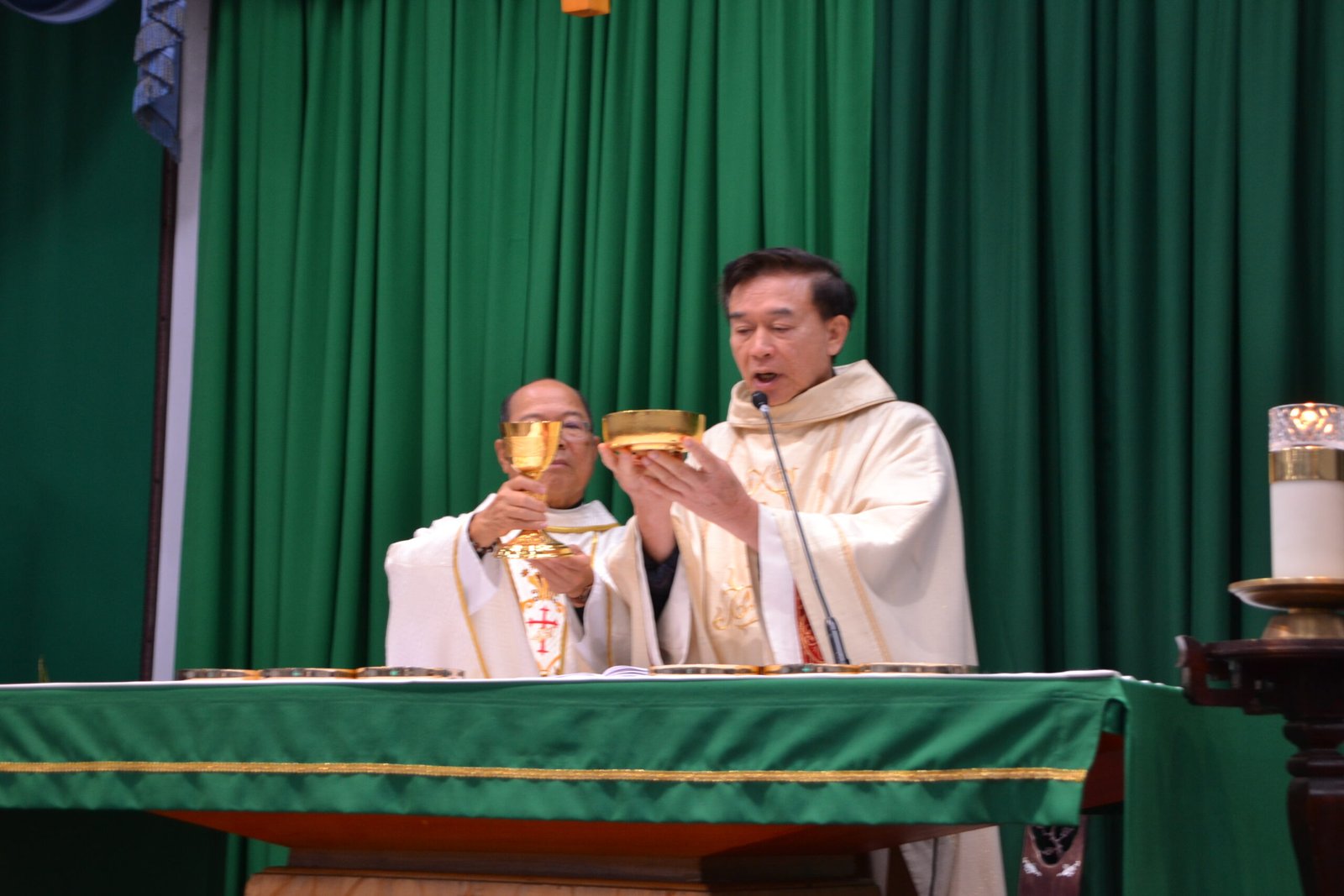 Cha Phạm Ngọc Tuấn làm dấu Thánh Giá bắt đầu thánh lễ và xin mọi người thành tâm thống hối, xin Chúa tha thứ mọi tội lỗi để xứng đáng tham dự vào Mầu Nhiệm Thánh này.