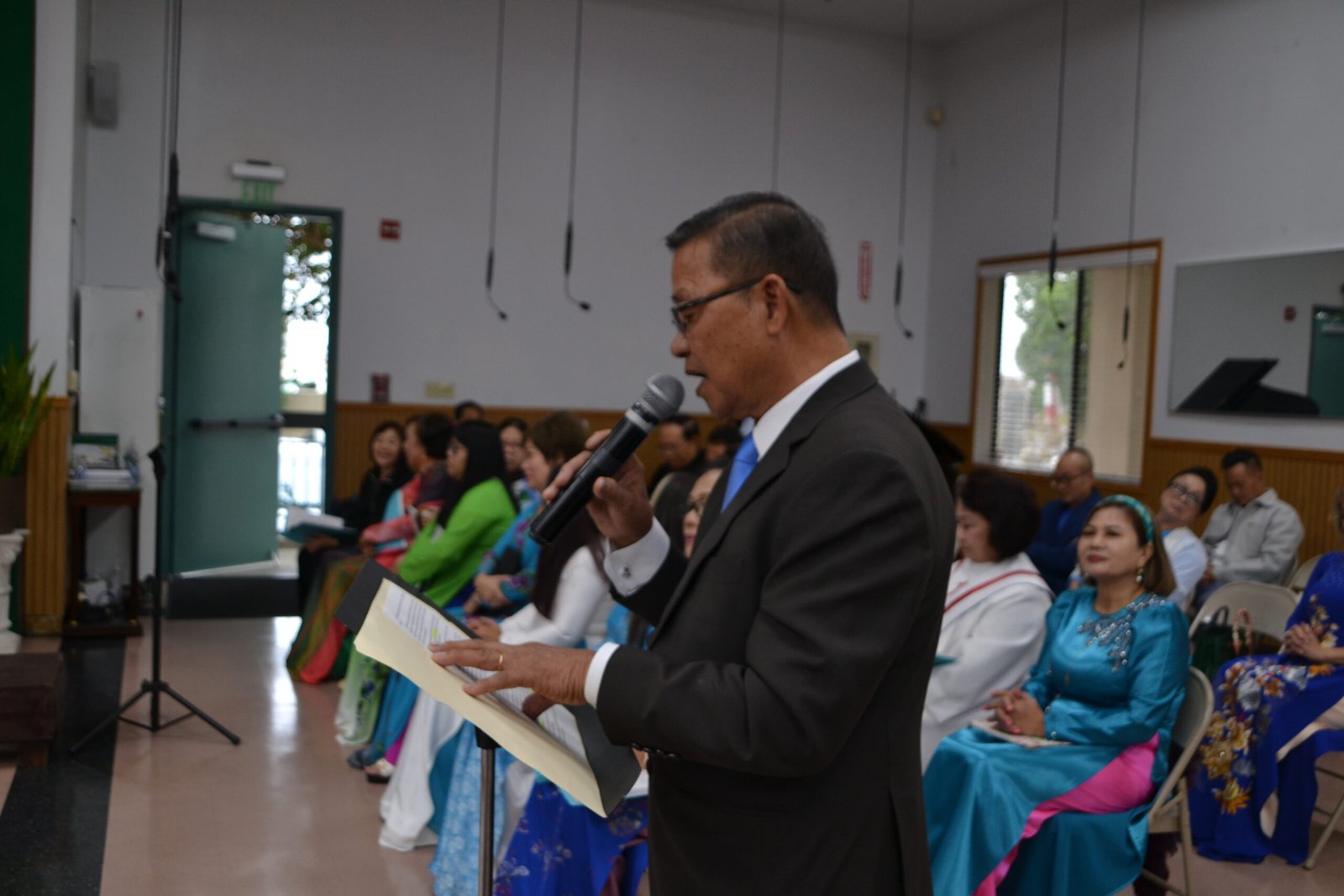 Trước khi kết thúc thánh lễ, ông Nguyễn Văn Chư, Liên Hội Trưởng Liên Hội Đền Tạ Trái Tim Đức Mẹ đã thay mặt Liên Hội cám ơn hai Cha, cám ơn Ban Chấp Hành Cộng Đồng, Cộng Đoàn, các hội đoàn Công Giáo Tiến Hành, ca đoàn cùng toàn thể tín hữu khắp nơi đã đến tham dự thánh lễ, cung nghinh thánh tượng Mẹ Fatima để xin Mẹ bầu cử cùng Chúa ban sự bình an cho quê hương Việt Nam, cho đất nước Hoa Kỳ và cho tất cả mọi gia đình chúng ta được sống trong an bình, hạnh phúc, và thay mặt Liên Hội Đền Tạ kính dâng hai Cha những bó hoa tươi thắm để tỏ lòng tri ân quý cha, đã luôn quan tâm đến Liên Hội Đền Tạ và có những lời khích lệ, an ủi quý giá để giúp Liên Hội chúng con thăng tiến về mặt tinh thần..