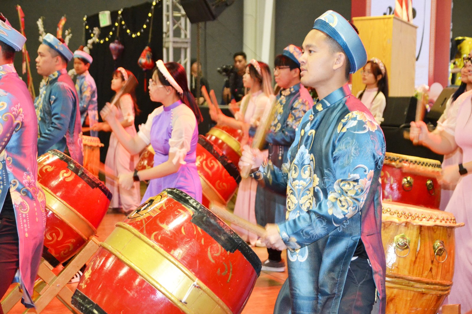 Đoàn trống Thiên Ân cống hiến những hồi trống rền vang trước giờ cử hành đại lễ.