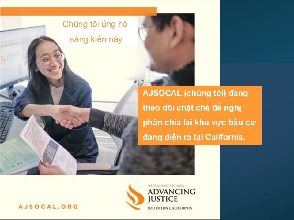 Hiệp hội Phát huy Công lý Người Mỹ gốc Á Nam California (AJSOCAL) đang theo dõi chặt chẽ sự đề nghị phân chia lại khu vực bầu cử đang diễn ra tại California.