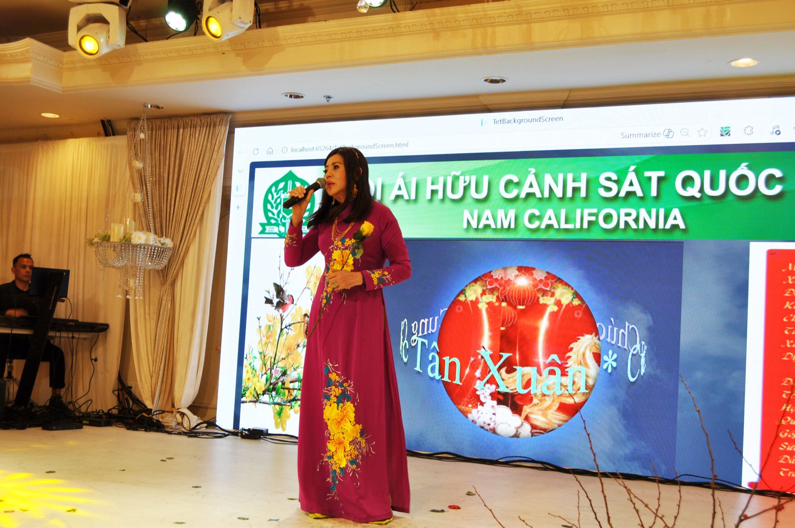 Sau các lời phát biểu, chương trình bước sang phần Tiệc Mừng Xuân và một chương trình văn nghệ sôi động do cô Lệ Ngọc điều động. Ngoài tiếng hát của các thành viên Hội CSQG Nam Cali, còn có tiếng hát của phái đoàn các Hội Quảng Nam Đà Nẵng với ca sĩ Kim Loan qua nhạc phẩm “Yêu Em Giữa Trời Quên Lãng”; , Hội Võ Bị với nhạc phẩm “Xuân và Tuổi Trẻ”; Hội Quảng Ngãi với ca sĩ Thúy Kiệt qua nhạc phẩm “Biển Tình”; Hội Bà Rịa Phước Tuy với ca sĩ Phương Linh qua nhạc phẩm “Đan Áo Mùa Xuân”, Nha Kỹ Thuật với nhạc phẩm “Đầu Xuân Lính Chúc”; Sư Đoàn 5 với ca sĩ Tường Vân đơn ca “Bao Giờ Biết Tương Tư”; Tập Thể Chiến Sĩ hợp ca “Chúng Mình Ba Đứa”và “Vẫn Còn Đây Các Con Của Mẹ”, kỹ sư Minh Trì với ca khúc “Mơ Hoa” ca sĩ Quỳnh Hoa đơn ca nhạc phẩm “Anh Cho Em Mùa Xuân”cùng nhiều thân hữu khác . Ca sĩ Lệ Ngọc người điều hợp chương trình văn nghệ cũng đóng góp tiếng hát qua nhạc phẩm “Tình Khúc Mùa Xuân”, và ca sĩ Mai Lan, phu nhân Hội Trưởng Đỗ Sơn xuất sắc trong nhạc phẩm “Non Nước Hữu Tình”.