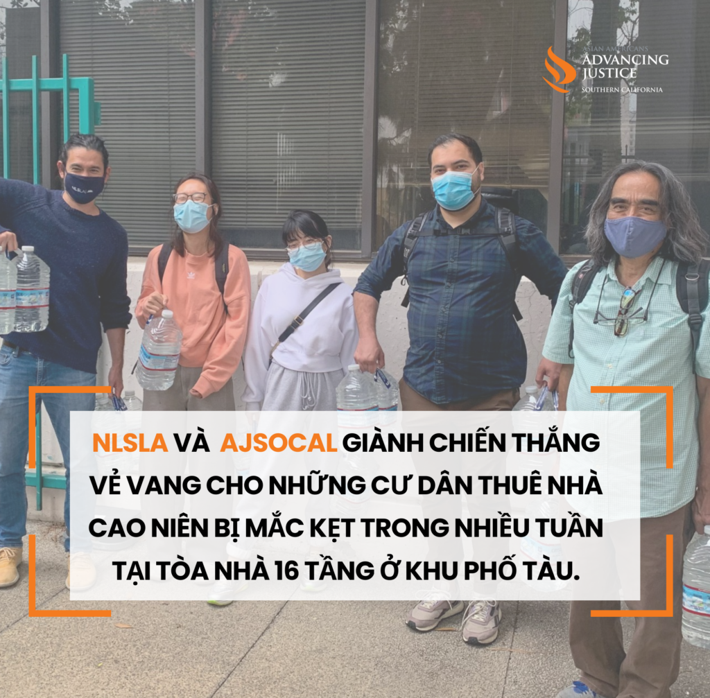 NGÀY 5, THÁNG 3, 2026, Los Angeles, CA – Dịch vụ pháp lý khu phố Los Angeles (NLSLA) và Hiệp Hội Phát Huy Công Lý người Mỹ gốc Á Nam California (AJSOCAL) thay mặt những vị cao niên đang cư ngụ trong điều kiện không an toàn tại toà nhà 16 tầng Cathay Manor ở khu phố Tàu (Chinatown) thuộc Thành phố Los Angeles ra thông báo về việc hoàn tất thành công vụ kiện kéo dài nhiều năm.