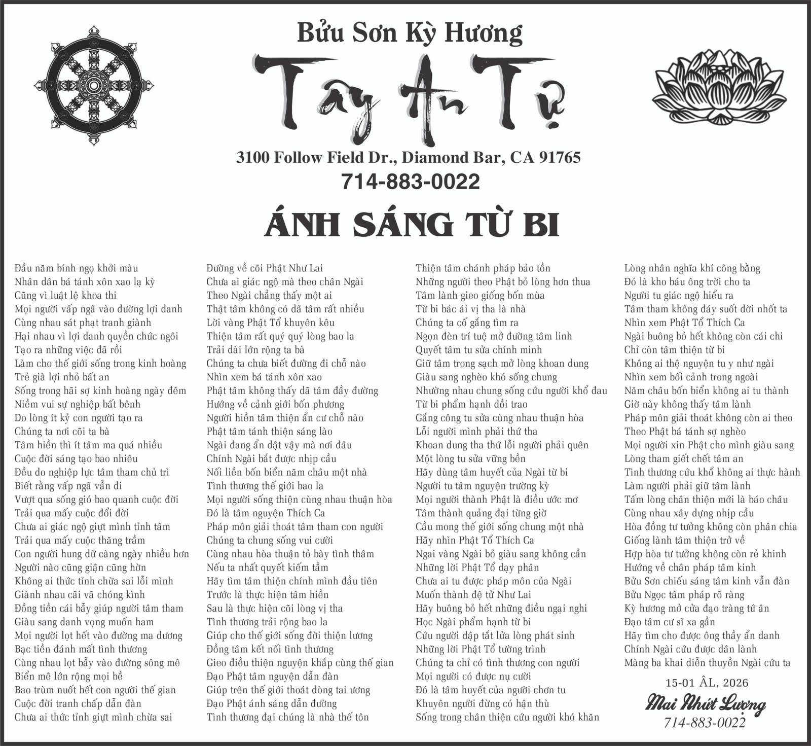 Thông Báo Cộng ĐồngTÂY AN TỰ: ÁNH SÁNG TỪ BI Posted on March 19, 2026 by T Nguyen T Nguyen PHÂN ƯU: ÔNG ĐỖ VĂN AN