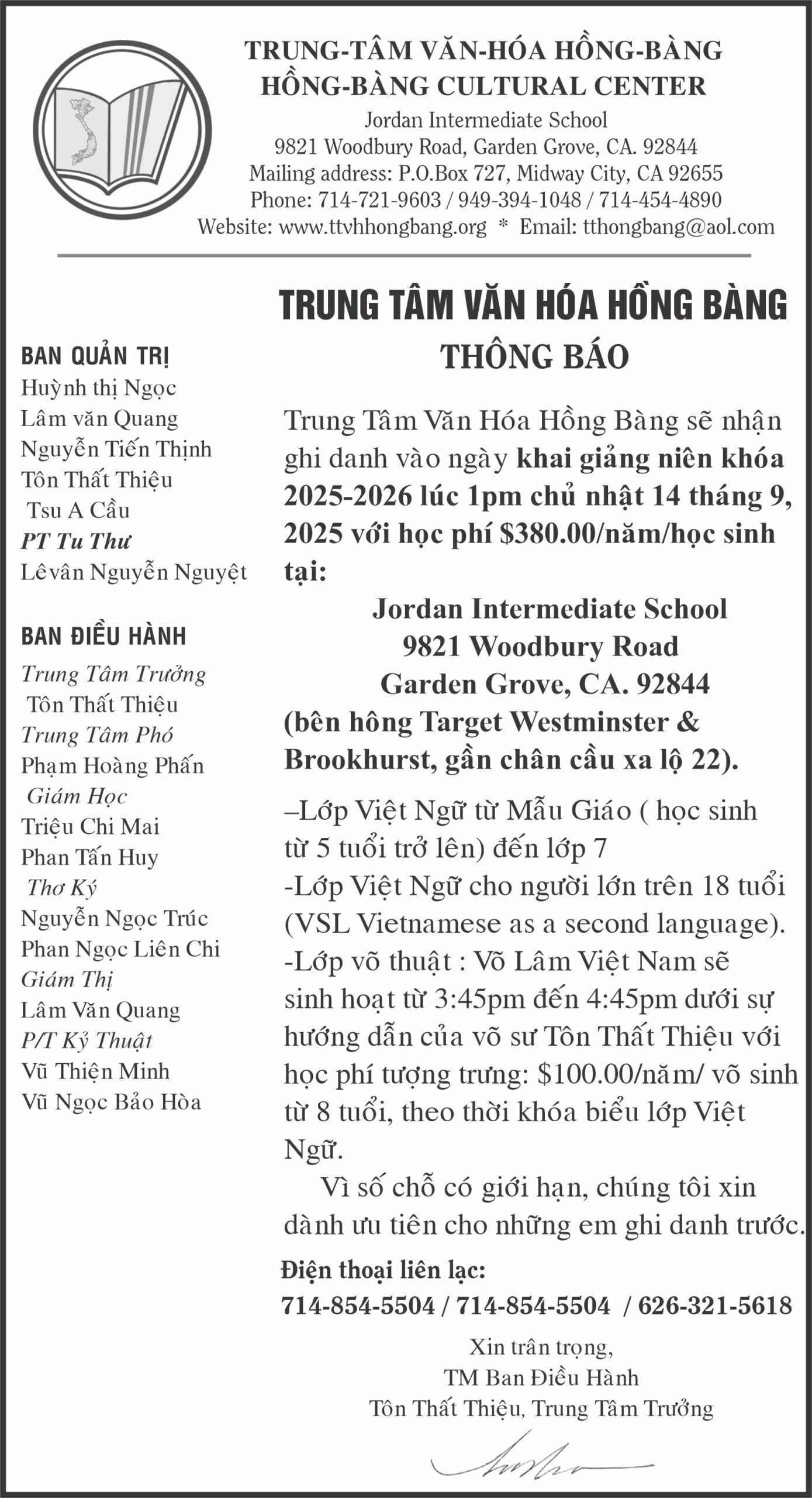 Thông Báo Cộng ĐồngTHÔNG BÁO: TRUNG TÂM VĂN HÓA HỒNG BÀNG Posted on September 3, 2025 by T Nguyen T Nguyen CHIA BUỒN: CỤ ÔNG HENRY CAO VĂN HẢO LỄ TƯỞNG NIỆM: TRI ÂN CÁC ANH HÙNG ĐÃ HY SINH