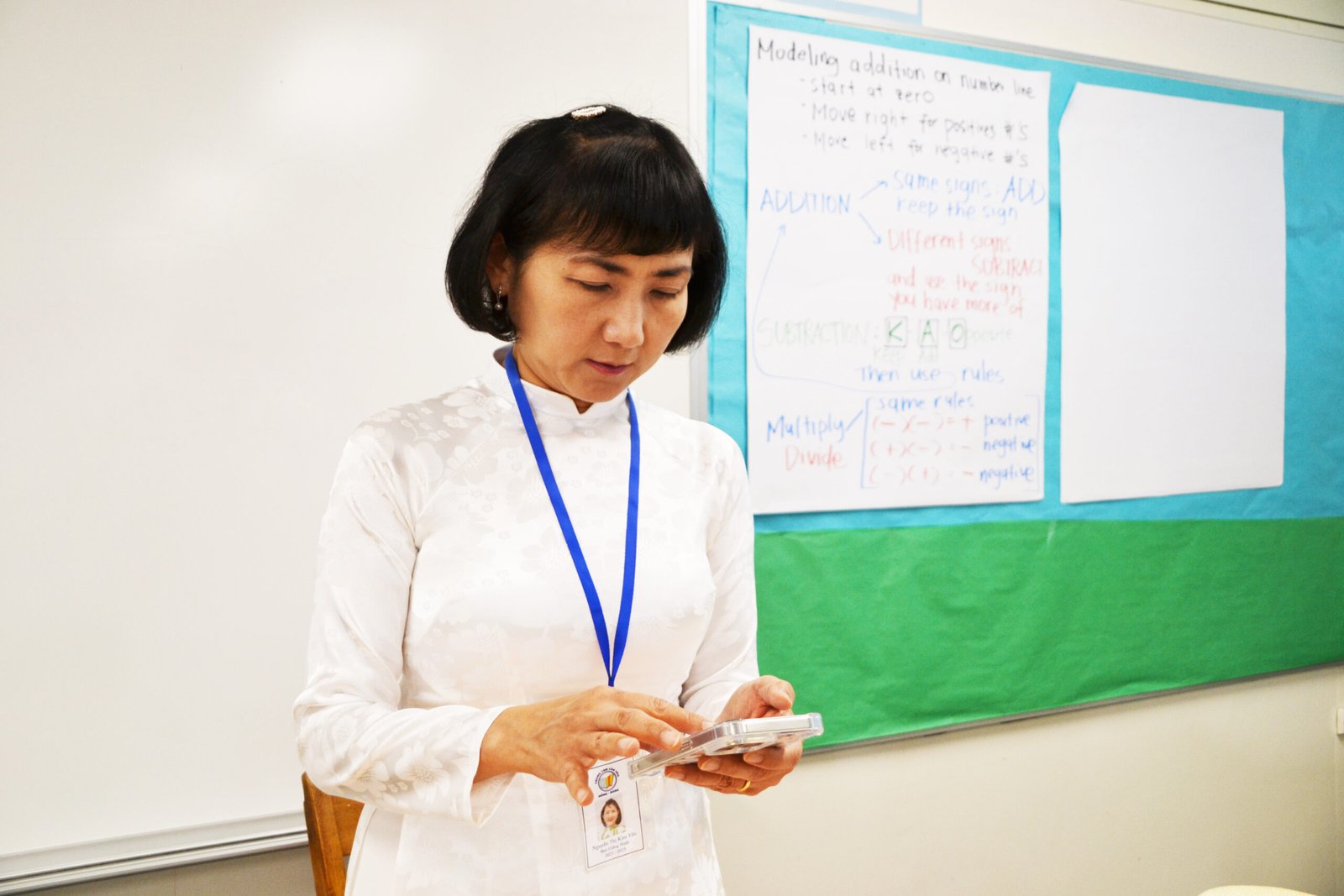Cô Nguyễn Kim Yến phụ trách lớp MG 2 cho biết: Ở bất cứ nước nào thì học sinh vẫn đứng thứ ba về nghịch ngợm, phá phách (Nhất qủy nhì ma thứ ba học trò mà). Như lớp của Yến, dù mới 5, 6 tuổi mà thỉnh thoảng các em bảo nhau đồng loạt 5, 6 đứa giơ tay: “Cô ơi, chúng em mắc đi tiểu” Sau khi các em đó vào lớp lại 3, 4 em khác giơ tay “Cô ơi, em muốn đi cầu”; Thật là mệt nhưng cũng thật vui. Cô Kim Yến, ngoài việc dạy tiếng Việt, cô còn có khả năng dạy các em múa hát rất hay.