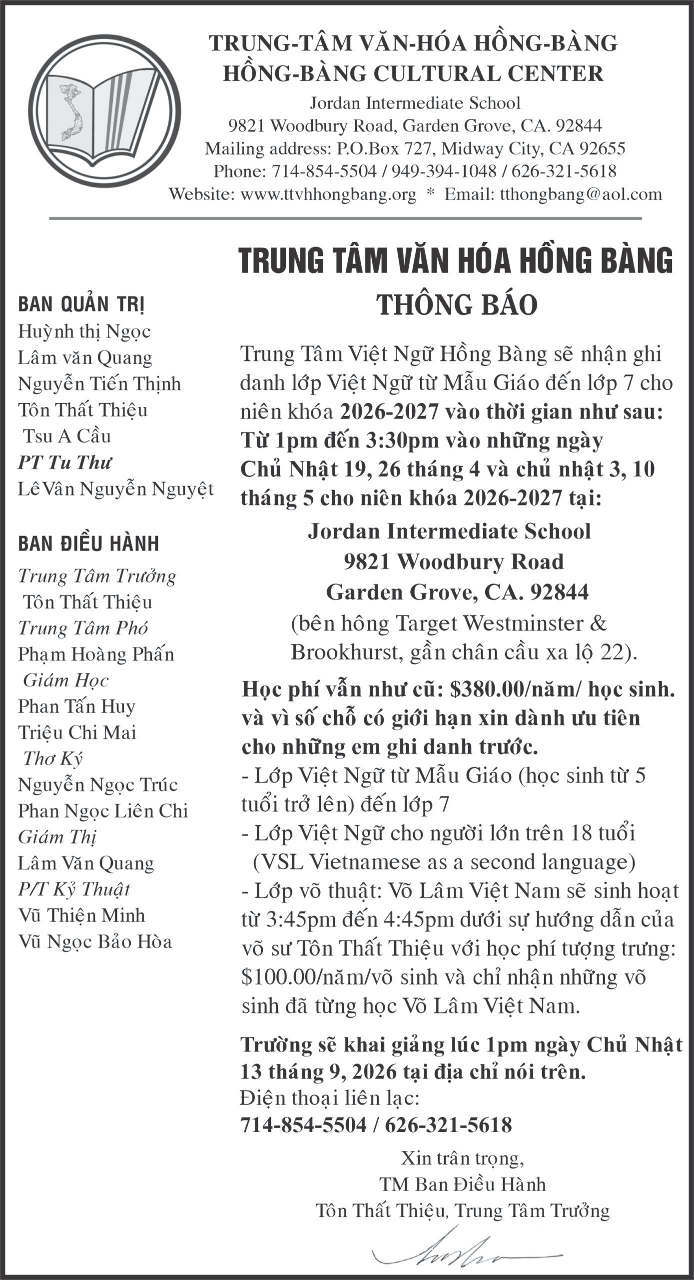 Thông Báo Cộng ĐồngTrung Tâm Việt Ngữ Hồng Bàng Thông Báo Ghi Danh Niên Khóa 2026-2027 Posted on April 14, 2026 by T Nguyen T Nguyen ĐẠI HỘI SUY TÔN LÒNG CHÚA THƯƠNG XÓT LẦN THỨ 26 Dàn sao LPGA và nghệ sĩ hội tụ tại Pechanga Casino cho giải golf Pechanga Pro-Am 2026