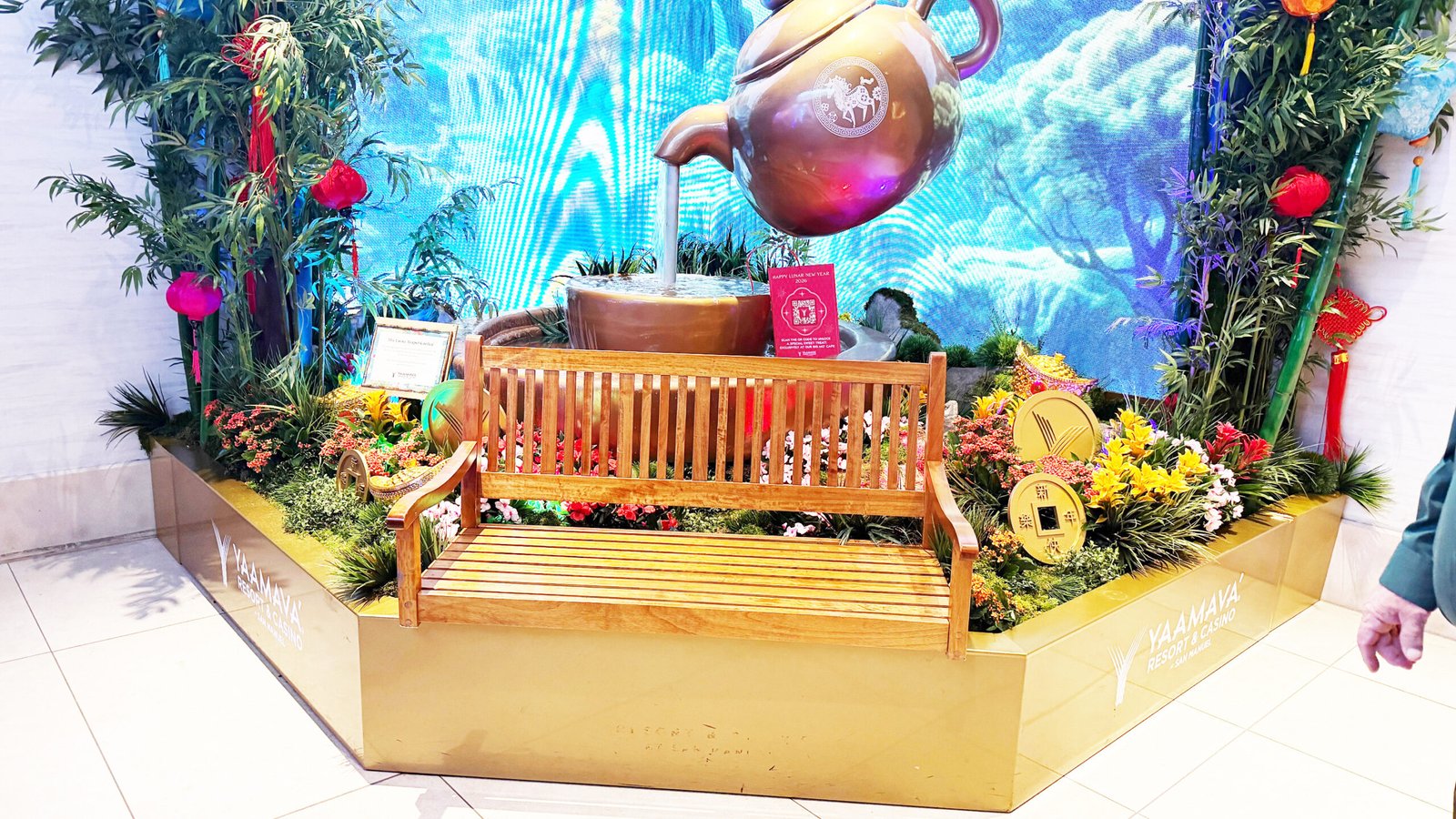 Toàn bộ không gian Yaamava’ được khoác lên diện mạo mới, rực rỡ và sống động với chủ đề con ngựa – biểu tượng của Bính Ngọ. Từ cổng vào cho đến các khu vực bên trong sòng bài, hình ảnh ngựa xuất hiện dày đặc, được sắp đặt công phu và có chủ ý. Điểm nhấn gây chú ý là hai bức tượng ngựa lớn đặt ở khu vực đón khách: một con ngựa vàng tượng trưng cho tài lộc, thịnh vượng; con còn lại mang sắc đỏ, biểu trưng cho “ngựa lửa” của năm Bính Ngọ, hàm ý về năng lượng, chuyển động và bứt phá.